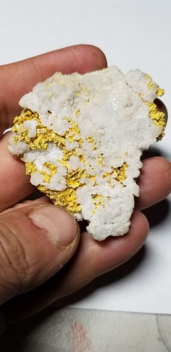 Discover the beauty and uniqueness of this 62.04-gram large quartz gold specimen, sourced from the historic Railroad Flat, California. A remarkable geological find, this piece showcases a thick quartz vein with exposed gold already visible on one side, making it a truly one-of-a-kind addition for both collectors and enthusiasts.