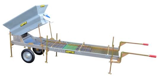 The 17834DH is one of the smallest high bankers that is capable of being fed by a compact excavator. The highly durable 2-inch grizzly classifier placed on top of the hoppers separates large rocks, removoing the need for hand separating. Comes with the same quality 1/4-inch and 3/8-inch classifiers as our other 178 Series power sluices. This newly designed 34-inch sluice is capable of handling an upwards of 4 yards per hour with its variety of riffles tailor made to accommodate all types of gravel and gold, ranging from fine to coarse.